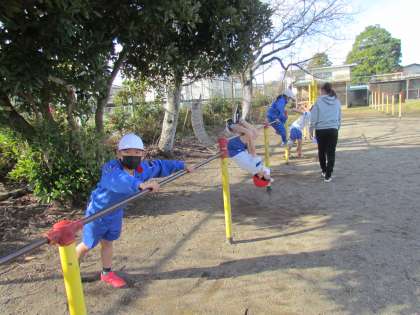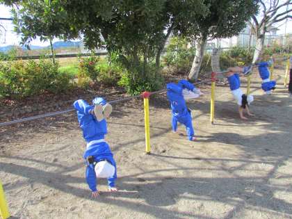 今日は鉄棒の授業のまとめです。何回もチャレンジしていろいろな技ができるようになりました。このあとも手にいっぱいマメを作って、鉄棒名人になりましょう。