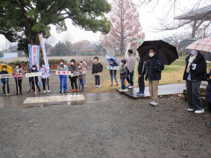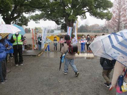 時折小雨がぱらつく寒い朝でしたが、今朝も「地域でふれあうあいさつ運動」が行われました。
