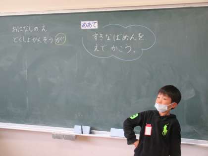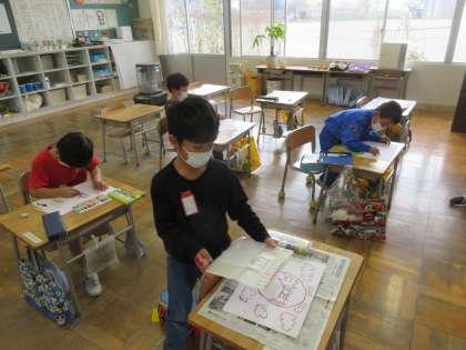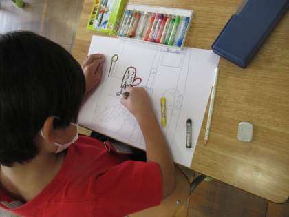 1年生の図工です。読書感想画の下絵に取り組んでいました。