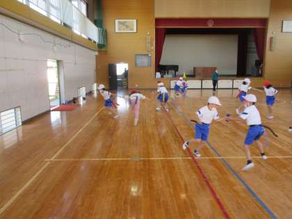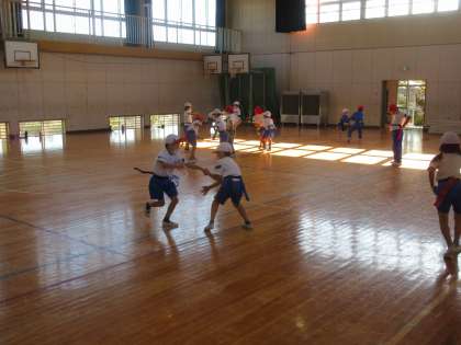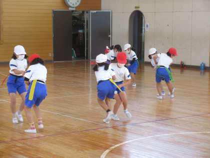 12年生の体育です。「鬼遊び」でタグを取り合っていました。遊びの基本は鬼ごっこですね。運動量があります。
