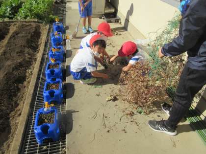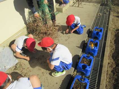 1年生の生活科です。今年育てていたアサガオから種を採取しました。また、学級園に来年度の一年生のために、チューリップの球根をみんなで植えることができました。もう1年生も終盤に差し掛かってきましたね!
