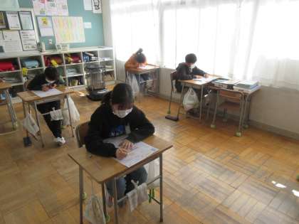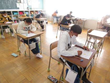 2学期も終わりを迎えようとしています。各学年ともまとめテストのオンパレードです。6年生は算数の確かめテストを行っていました。真剣な表情で取り組んでいました。