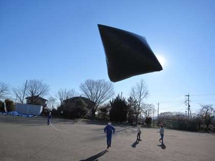 日光にあたためられたバルーンの中の空気はふくらみ、一部がバルーンの外に出て行きます。外に出ていった空気の重さの分だけ軽くなり、バルーンは上にあがります。