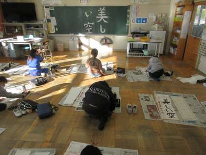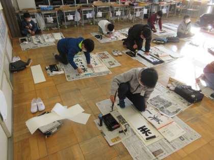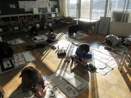 4年生は1・2校時に教室で毛筆の書き初めを行いました。