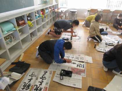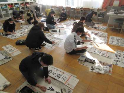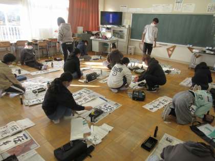 6年生は1・2校時に教室で毛筆の書き初めを行いました。