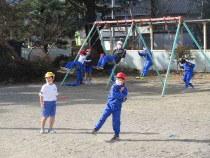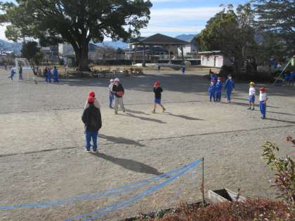 本校では、20分休み時間は、体調および天候に問題がなければ校庭に出て遊ぶことになっています。今日は穏やかな天気ですが、冬でも子どもたちは元気に校庭に出てそれぞれの興味に合わせた遊びを行っています。子どもにとっての遊び(体を動かず遊びですが)は、運動習慣形成にはうってつけです。また本校では、学年を超えて一緒に遊んでいる子も多く、小さな学校のよさがこのような場所で感じることができています。