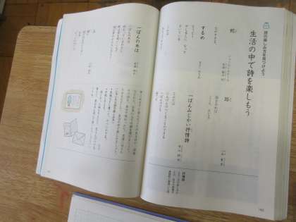 5年生の国語「生活の中で詩を楽しもう」の学習です。教科書に出ている生活感のある詩の中で自分が気に入ったものを紹介する文章を書いていました。このあとで、実際に詩を書く予定になっています。