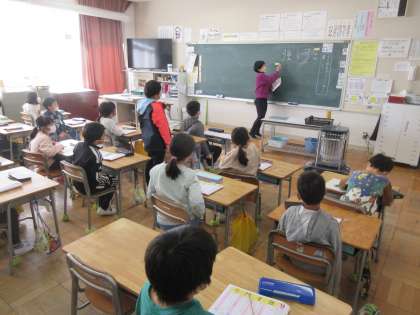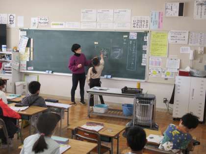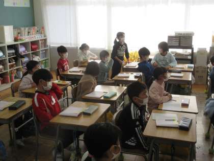 2年生の国語「漢字スキル」の時間です。微妙な漢字の形の違いを、子どもたちが指摘できていました。