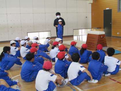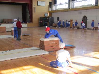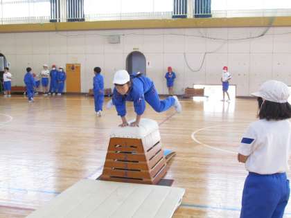体育館の空気は冷たいですが、子どもたちは汗をかきながら跳び箱を跳んでいます。自分の挑戦する高さを選んで、開脚跳びを行っていました。どんどん跳べるようになって、見ているほうも嬉しくなります。