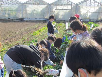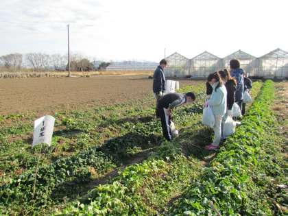年末にだいこんやかぶ、水菜などを畑で収穫しました。今回は主に【ほうれん草】です。寒い中、太陽の光を浴びてとっても肉厚な【ほうれん草】ができていました。今日は3年生が1番先に収穫をし、大喜びで【ほうれん草】をとり、お家へのお土産にしました。