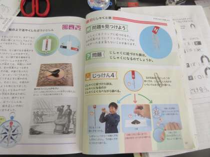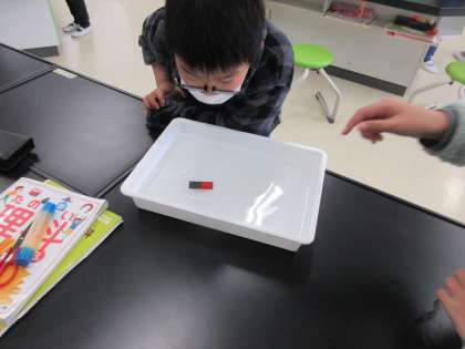 3年生も元気です。3年生は理科で「じしゃく」の学習をしていました。磁石を使ったいくつかの実験をして磁石のはたらきを調べていました。