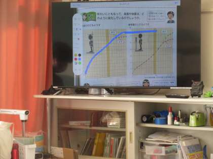 4年生の保健「体の発育・発達」の学習です。今日は今までの自分の身長と体重の記録から成長曲線を作ることをタブレットを使って行っていました。成長の記録が見てわかりますね。
