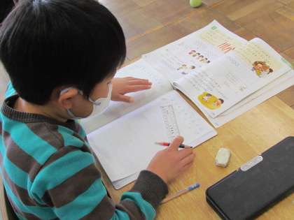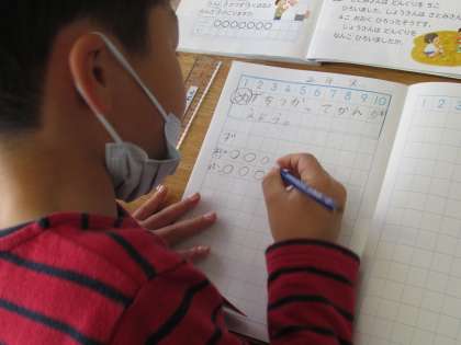 今日の算数は文章問題です。まずは文章を読んで、何が大切なのか、何を聞いているのか、読み取ります。次は読み取ったものを図で表して、式を立て、答えを出していきます。この丁寧な作業が算数の学習には、とても大切なのです。