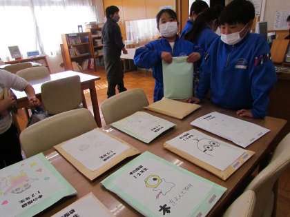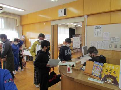 昼休みは図書室で「本の福袋」が用意されていました。先日図書委員さんが一生懸命書いた表紙付きの福袋です。何が入っているかはお楽しみ。自分で選ぶのもいいけれど、新たな本との出会いがあるかもしれません。