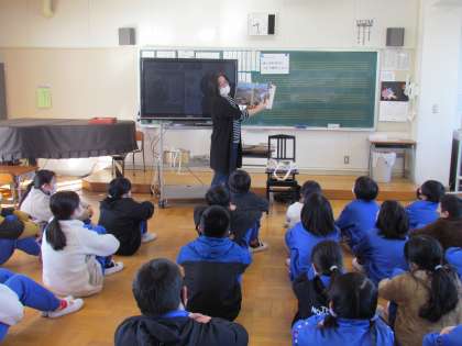 高学年は【石】が中心の読み聞かせの時間でした。実際にいろいろな【石】を持ってきてくれ、それを見せてもらいました。【石】といっても様々な色・形があり、場所によっても違うことに気付きました。【石】は地球そのもの。足下に落ちている石にも興味がわいてきそうです。