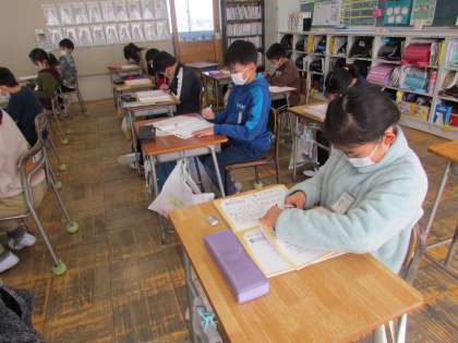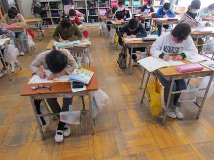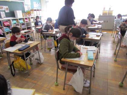 とっても静かだと思ったら、【書写】の時間でした。黙々と自分の書写ノートに字を書いています。姿勢よく、正しい鉛筆の持ち方ができると、さらに字も上手になるでしょう。