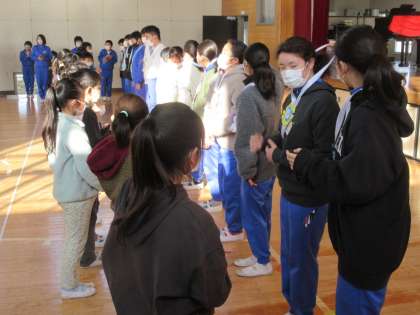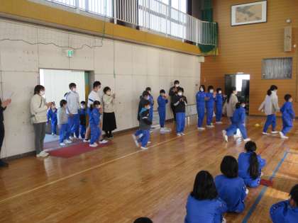 本日の業前の時間に「6年生を送る会」を実施しました。卒業が間近に迫った6年生に対し、在校生から感謝の気持ちを表しました。会の進行は5年生が行ってくれました。