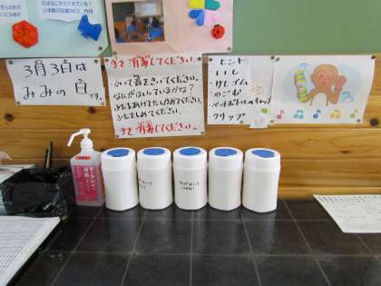 保健室前の【耳の日】特集です。今日は【ひな祭り】ですが、【耳の日】でもあります。普段何気なく過ごしていますが、大切な耳をより意識して過ごしていけるといいですね。さて、白い入れ物の中に入っている物が何か、当てられるかな?
