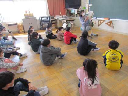 今年最後の【読み聞かせ】でした。1年間大変お世話になり、たくさんの本を読んでいただきました。自分が選ぶのとは違うので、子どもたちもいろいろなジャンルの本に親しむことができました。また来年度もどうぞよろしくお願いします。