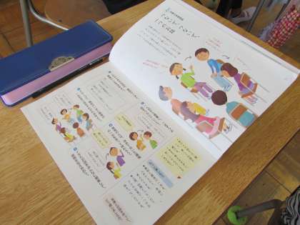 今日の国語は【つないで、つないで、一つのお話】という題材でした。最初の一文と最後の一文を決めて、みんなでお話をつないでいきます。グループのメンバーを変えながら楽しくお話を作っていました。