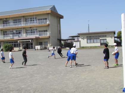 今日は天気予報で【黄砂】が非常に多く飛ぶ、と出ていました。確かに山のほうを見るともやがかかっているように見えますが、そんなことは全くお構いなしの東小っ子です。昼休みの校庭は今日も子どもたちでいっぱい。時折、元気すぎてけがをすることもありますが、保健室で見てもらうとすぐにもとの元気に戻ります。今日もたくさん遊びましたね。