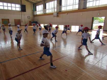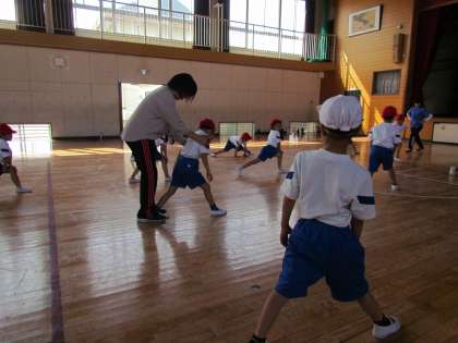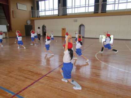 1.2年生の今日の体育は、体育館で準備運動の確認をしていました。アキレス腱の部分を知って、伸ばし方をやってみました。意外と正しく行うのは難しい準備運動。だんだんと覚えて正しくできるようになるといいですね。