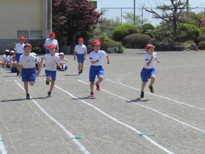 中にいると空気がひんやりしていますが、外に出た途端結構な暑さです。その中でも5.6年生は一生懸命走りました。50m走の計測です。さて、去年の記録よりもよい記録が出たでしょうか?