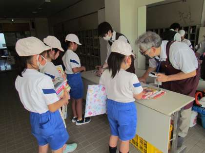 今年も、巡回文庫が図書館からやってきてくれました。選んできて持ってきていただいた本の中から、さらに自分好みの本を選び、借りていきます。