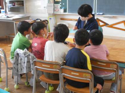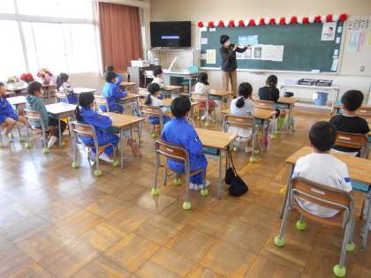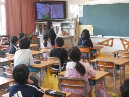 業前活動では、今年度初めてボランティアの方々による読み聞かせがありました。低学年の子どもたちは、本や画面を食い入るように見つめながら楽しそうな顔をして聞いていました。