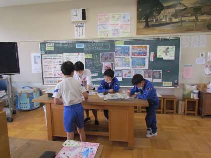 4年生は【絵の具でゆめもよう】という題材で作品を作っています。今日はその仕上げの時間。自分で考えたアイデア満載の作品ができあがりそうです。明日の授業参観の時にぜひご覧ください。