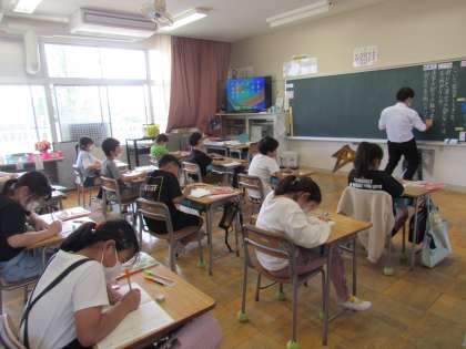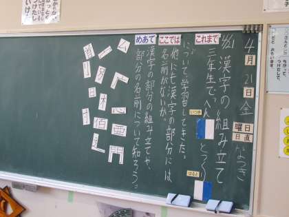 4年生も【国語】でした。今日は漢字の組み立ての学習です。3年生の時に習った【へん】【つくり】を思い出し、他にもどんな漢字の部分があるのか、考えました。どんな漢字の部分がわかったかな?