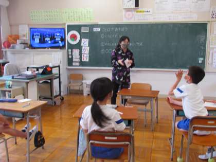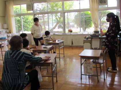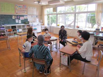 こちらも国語、お母さんたちも授業に参加してもらい、楽しそうに和気あいあいと学習していました。ご協力、ありがとうございました。