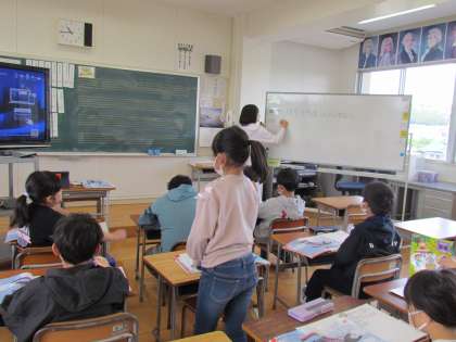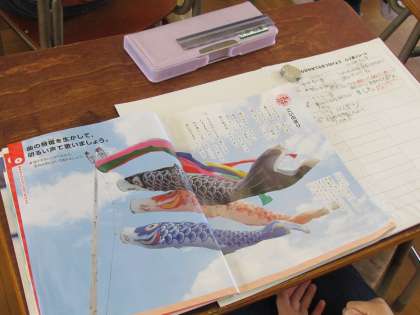 さて、今週も始まりました。元気な5年生は音楽で【こいのぼり】の学習です。いつも歌う【こいのぼり】とは違う曲を聴き、自分が感じたことを発表していました。