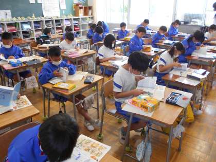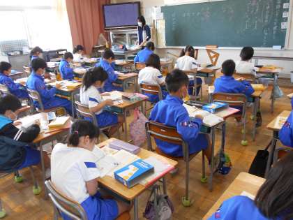 国語辞典の使い方の学習です。今後、国語辞典はたくさん使うことになります。何回も何回も使っていく中で、慣れて早く言葉を調べることができます。「暮らす・クラス」「バレー・バレエ」等似たような言葉を調べました。