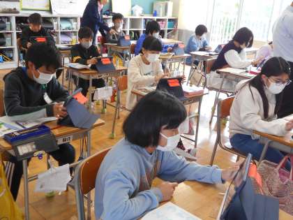 5月8日(月)授業風景〜2校時6年算数〜 公開日 2023/05/08 更新日 2023/05/08 2025お知らせ 「形の特徴を調べよう」 タブレットを使って、アルファベットやいろいろな図形などを折ったり、回転させたりして重なりなどを調べました。