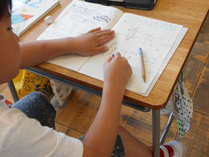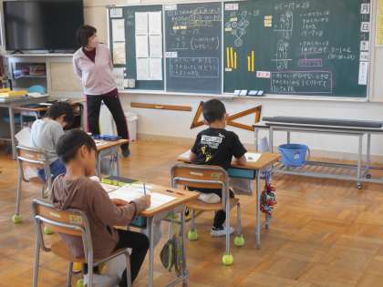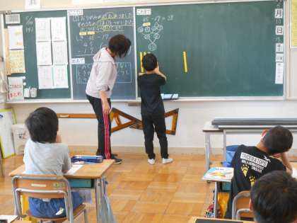 一の位が引けないときの筆算はどうにするのか、サクランボ計算などをヒントに考えました。十の位から借りてくればよいことに気づき答えを出すことができました。繰り下げるという言葉も覚え、まとめに「十の位から1繰り下げて計算する」と書いていました。