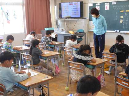 前時の「5」に続き、今日は「6」がいくつといくつでできているのか考えました。隣同士でおはじきを使ったゲームを通して理解しました。算数の時間も意欲的にたくさん手を挙げ発言する一年生です。