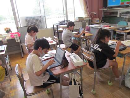 4年生の国語もスクールサポーターさんにお世話になりながらの授業でした。こちらは【オクリンク】を使って、自分が訪れた春の祭りや場所などの紹介カードを作っていました。文章を書いたり、写真を使ったり、すてきなカードが完成しそうです。
