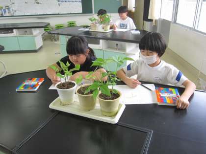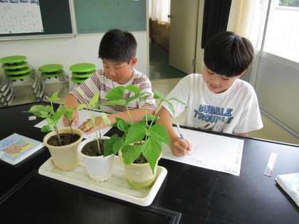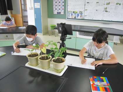 5月22日(月)授業風景〜4校時5年理科〜植物の発芽と成長(その1) 公開日 2023/05/22 更新日 2023/05/22 2025できごと 植物の成長に必要な条件を調べる実験の結果を確認しました。
