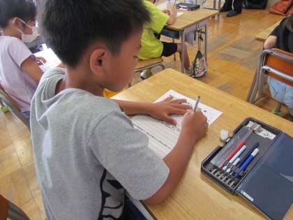 スクールサポーターの方に来ていただき、【万引き防止教室】を行いました。【万引き】をするとどういうことになるのか、いかによくないことなのかを学ぶことができました。