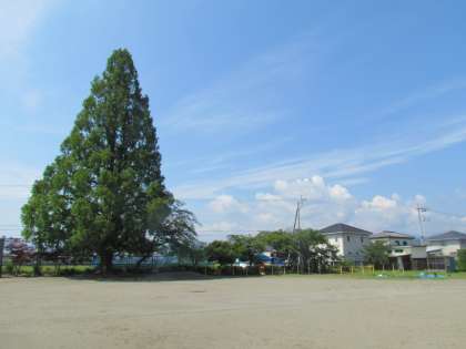 今日も気温が高くて、お昼休みは外で遊ぶことができませんでした。気温は高いけれど、そんなのお構いなしに、校庭の木々は元気いっぱいです。青い空に緑色のロケットの木とくすのきがとてもきれいです。