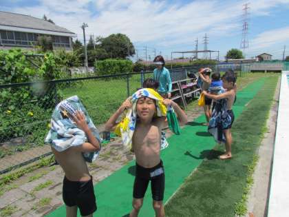 朝は雨が降っていましたが、今日は真夏の日差しが照りつける暑い日となりました。まさにプール日和。1.2年生も自分の課題に向かって楽しみながらがんばっていました。