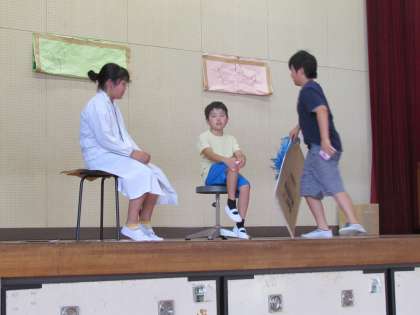 朝は体育館で保健委員さんの発表でした。(先週学校保健委員会で発表したもの)今までたくさん練習してきた成果を全校の前で堂々と発表することができました。保健委員さん、とってもがんばりましたね。素晴らしい発表でした。