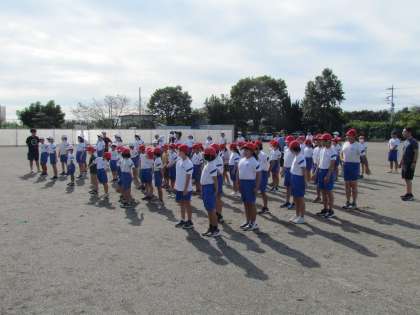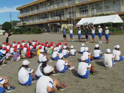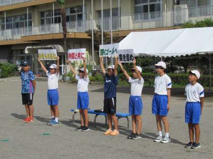 任命式・表彰のあとは、6年生の【運動会スローガン】発表です。今年のスローガンは【あきらめるな 仲間と共に 輝くゴールへ突き進め】です。このスローガンの下、運動会に向けてがんばっていきましょう。