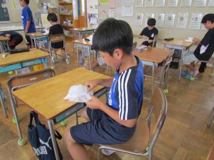 4年生は運動会の花作りをしてくれています。一枚ずつ花紙を丁寧に広げて、上手に花を作ってくれました。運動会がどんどん近づいてきていますね。