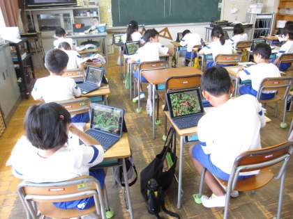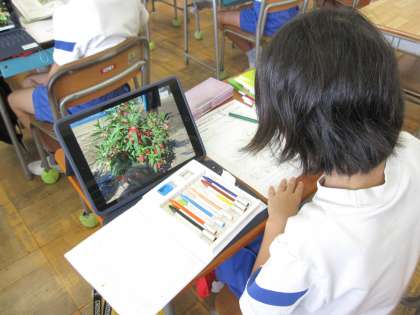 外は暑いので、タブレットで写真を撮って教室でかんさつカードを書きました。