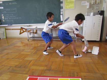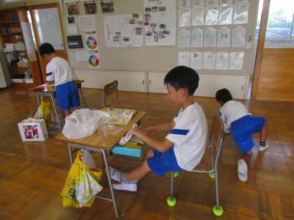 2年生は生活科の学習【動くおもちゃを作ろう】です。作ったもので楽しく遊んだり、もっといいものを作ろうと工夫したりしています。自分で考え、工夫することはとても大切ですね。