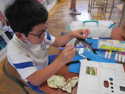 9月22日(金)授業風景〜5校時4年図工〜 公開日 2023/09/22 更新日 2023/09/22 2025できごと 紙粘土で自分の好きなものを形作り、それに絵の具で色をつけていました。手に色を塗っている子もいましたが、紙粘土で本物そっくりに作っている子もいました。