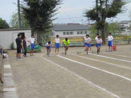 体育館工事のため、なかなか練習ができない種目もあるため、今日は東中で一部の子たちが練習を行いました。とてもよい刺激になったようです。
