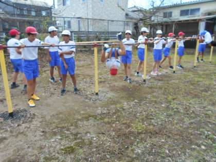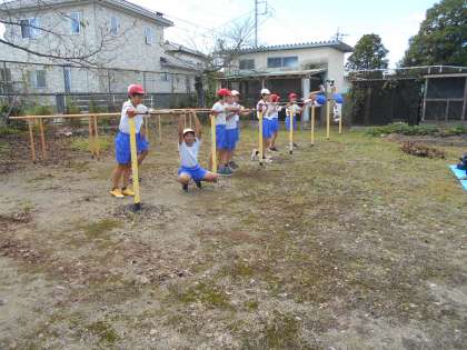 鉄棒の逆上がりに挑戦。もう少しでできそうな子が多く、あと何回か練習して、コツをつかめばできるようになるでしょう。